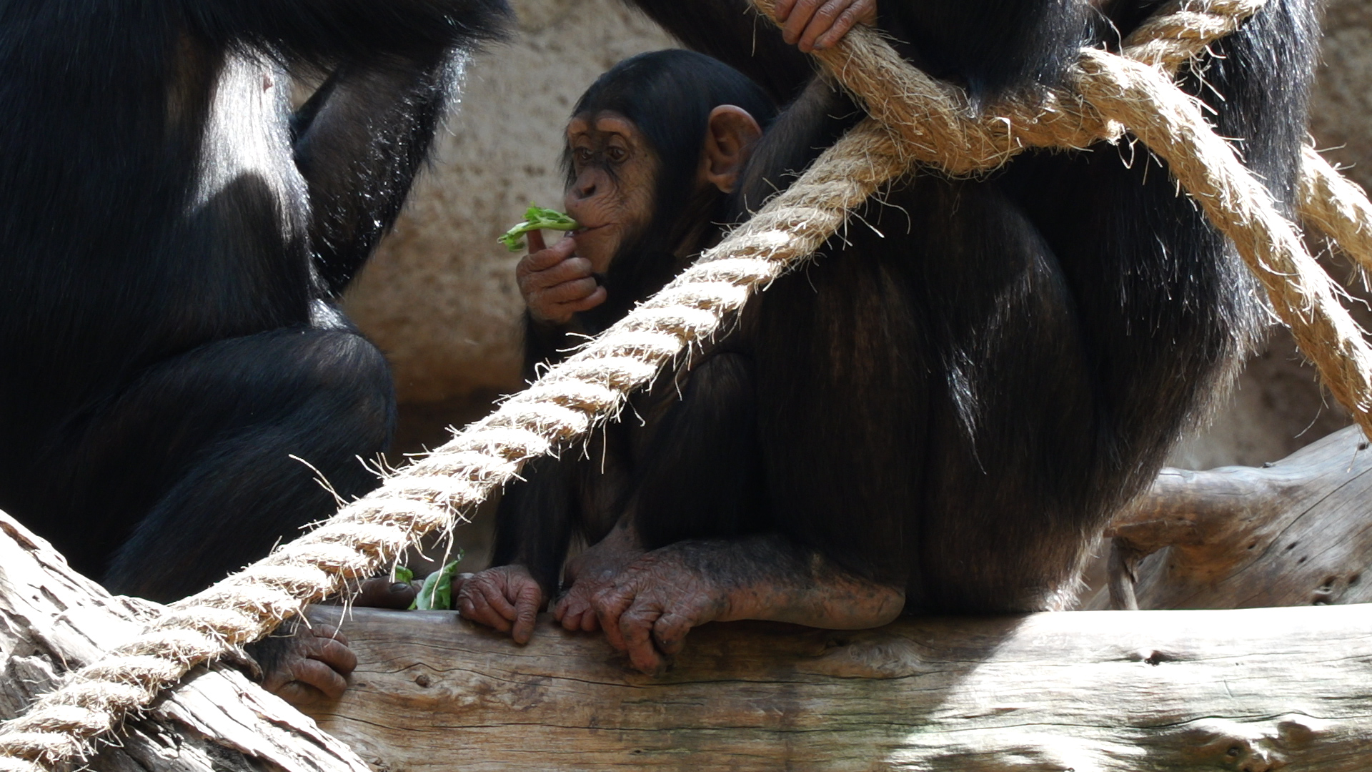 Außerdem konnten Happy’s Brüder, Bongo und Gombe, zum ersten Mal miterleben, wie es ist mit einem Schimpansenbaby zusammenzuleben und sie lernten, wie man auf Babys aufpassen muss. Etwas, das für ihre spätere Reife sehr bereichernd ist.