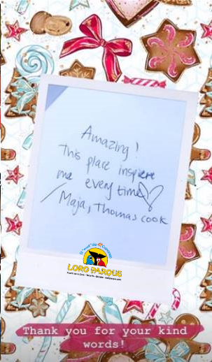 During the 47-year trajectory of Loro Parque, we have been visited by over 49 000 000 guests, many of whom have repeated their experience and have left their testimonials in our Guest Books which are available to all visitors and which can be seen in our regular social media posts. These are the truly independent opinions of the people who have visited us and could verify for themselves the level of care and affection that we give to all animals every day. Here are some of them: