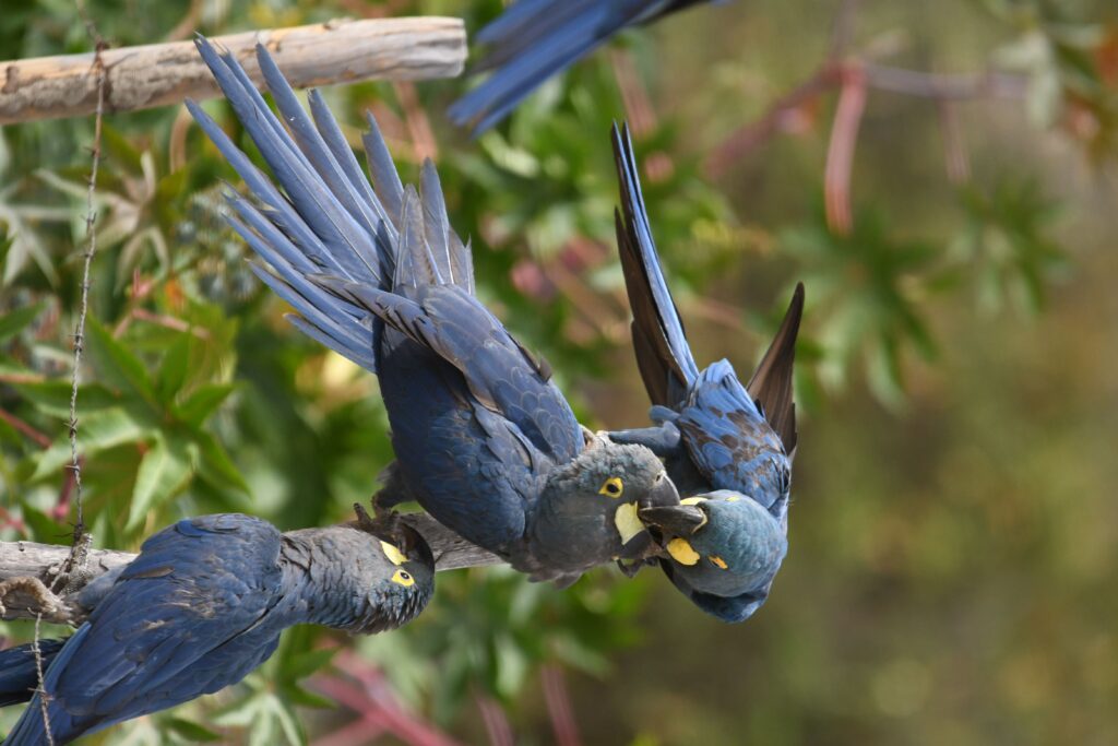 Guacamayos de Lear interactuando